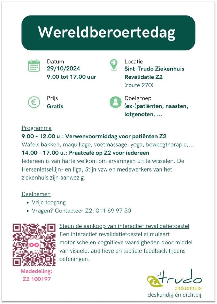 Sint-Trudo nodigt jullie hartelijk uit op hun Wereldberoertedag. In de voormiddag organiseren ze mooie patiëntinitiatieven.